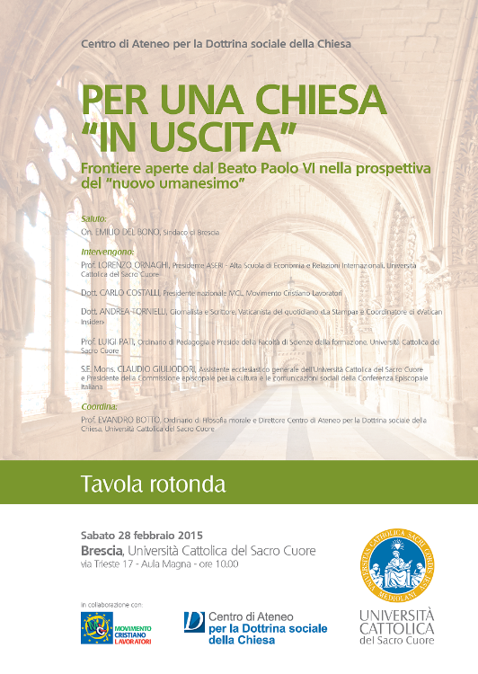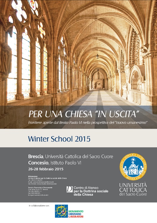 La Winter School intende esplorare alcuni aspetti della figura e dell’opera del Beato Paolo VI, che sembrano aver maggiormente contribuito ad innovare la tradizione del magistero sociale della Chiesa: l’accento posto sulla dimensione planetaria ormai assunta dalla questione sociale e sull’urgenza di uno sviluppo integrale di uomini e popoli; la sollecitudine per i temi della pace, delle relazioni internazionali e della salvaguardia del creato; l’interesse per l’arte, la cultura e la comunicazione, considerati come “luoghi” privilegiati di un dialogo sempre più serrato tra Chiesa e mondo contemporaneo. Si potrà così toccare con mano come il Papa bresciano abbia anticipato non poche delle “novità” di pensiero e di azione che avrebbero caratterizzato l’opera dei suoi Successori, preparando il terreno per quel dinamismo missionario cui, da ultimo, lo stesso Papa Francesco – con il Suo costante appello ad una Chiesa “in uscita” – ci invita accoratamente.
